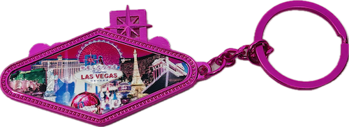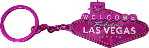 Carry a piece of Las Vegas with you wherever you go. This double-sided keychain showcases the legendary "Welcome to Fabulous Las Vegas" sign on one side, while the reverse displays the glittering skyline of the world-famous Strip complete with iconic landmark properties. Encased in striking pink metallic foil, this keepsake captures the vibrant energy of Sin City in vivid detail. Whether attached to your keys or bag, it serves as a stylish reminder of your Vegas adventure and makes an excellent souvenir for gaming enthusiasts and travelers alike.