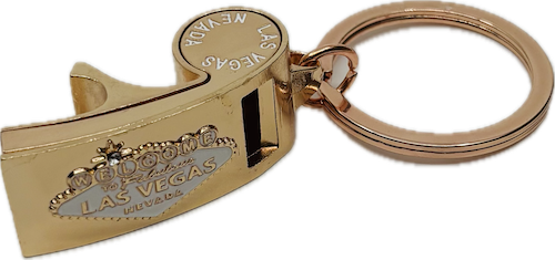 Make a statement with this Las Vegas Whistle Keychain, designed for those who demand both style and function. Featuring the iconic Las Vegas sign, this versatile accessory is available in sleek gun metal or elegant rose gold finishes. Perfect for coordinating teams, managing groups, or simply keeping a piece of Vegas with you wherever you go. Whether you're an active lifestyle enthusiast or looking for a memorable souvenir from the entertainment capital, this keychain combines practical utility with distinctive design that captures the spirit of Las Vegas.