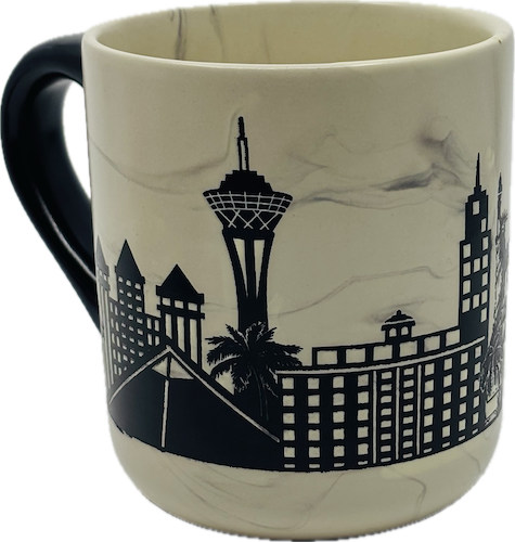 Return to timeless style with this elegant black-and-white mug showcasing the iconic Las Vegas skyline, including famous landmarks like the Welcome to Las Vegas sign and signature Strip properties. The marbled black and white design adds a sophisticated touch that appeals to any classic Las Vegas enthusiast. Ideal as a memorable gift, this mug celebrates the charm of the entertainment capital and makes a perfect keepsake for those who cherish their Vegas experience.